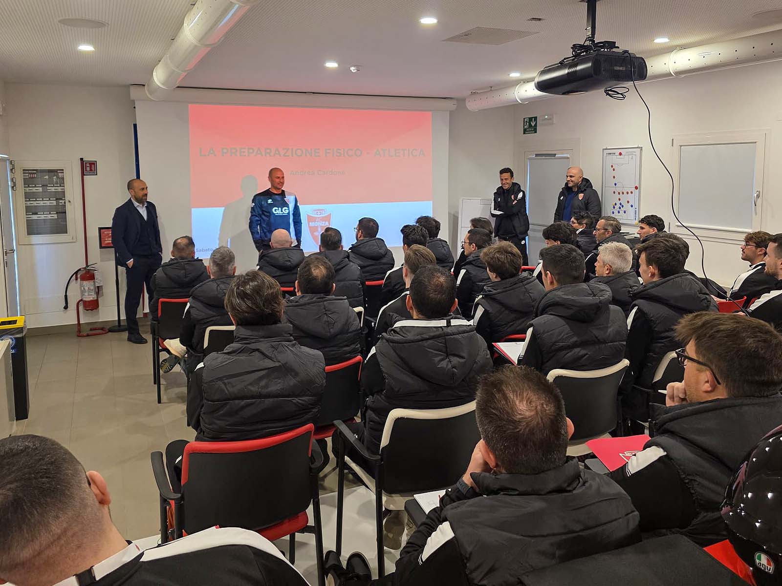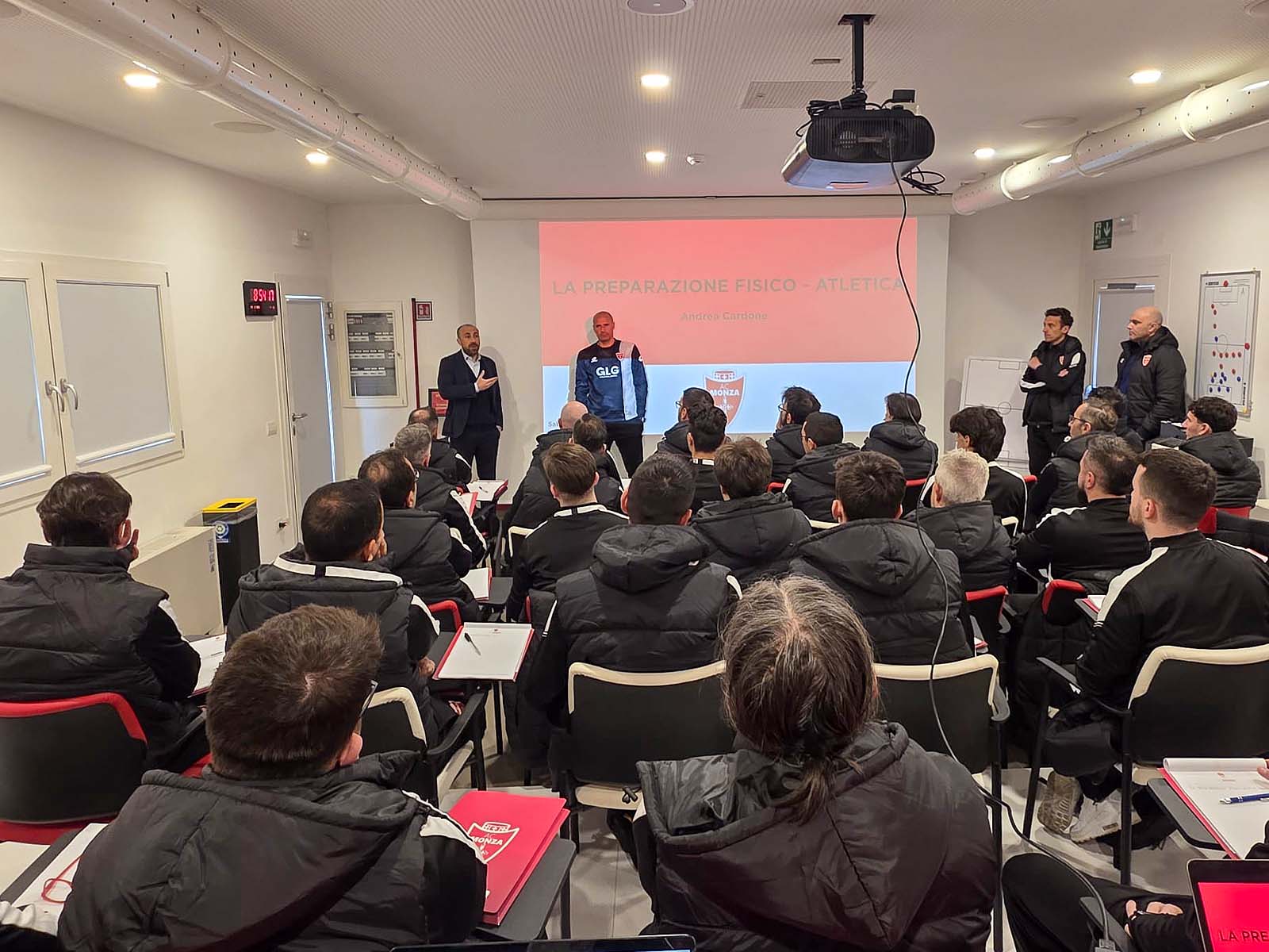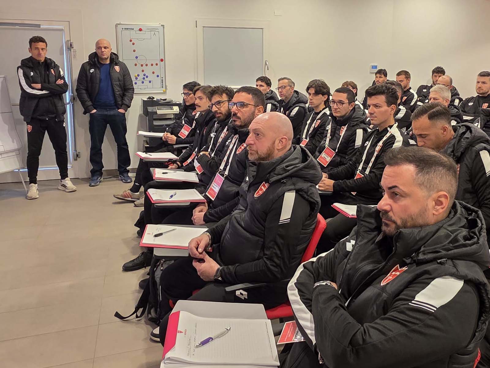 The coach concluded by sharing several insights with the many course participants, based on his daily working methodology, which is founded on two key pillars: on one hand, an integrated approach involving the technical, tactical and physical aspects working in synergy so that the team operates as a single unit; on the other hand, an individualized approach that places each player at the center of a specific development path, aimed at enhancing individual characteristics within the collective system.